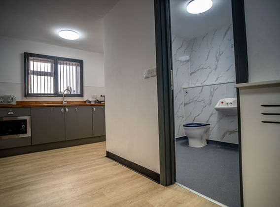 Phoenix House has the potential to provide residential care and / or shared living accommodation for a maximum of four individuals. There is a lounge in each suite in following with the environmental theme of Phoenix House in that it promotes “low arousal” as well as their own kitchenettes for individual use and skills development. There are en suites in all bathrooms which are fitted with sensor operated functions.